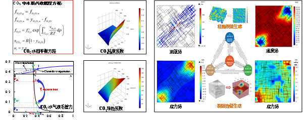 ①CO2地质封存模拟及软件开发;②基于CO2的多相渗流换热;③CO2提高油气采收率;④热流固化反应流动