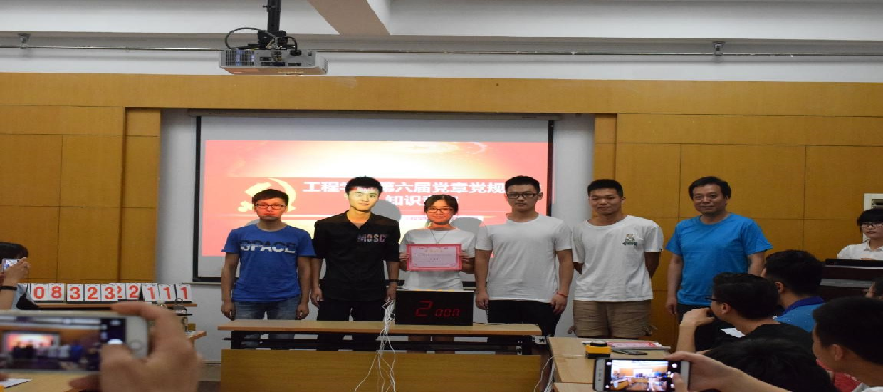 (通讯员:文新)2017年5月14日晚7点,太阳成tyc33455ccwww第六届党章党规党史知识竞赛决赛在工程楼315报告厅举行,公司党委书记陈飞,公司党委副书记江广长,辅导员文新、王俊以及6支决赛队伍参加了比赛。