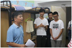 罗学东和辅导员文新则前往了研究生宿舍进行看望新生。罗学东讲到,研究生阶段是一个新的起点,应该更加学会独立,并潜心投入到科研当中,培养科学的素养和实验研究能力。