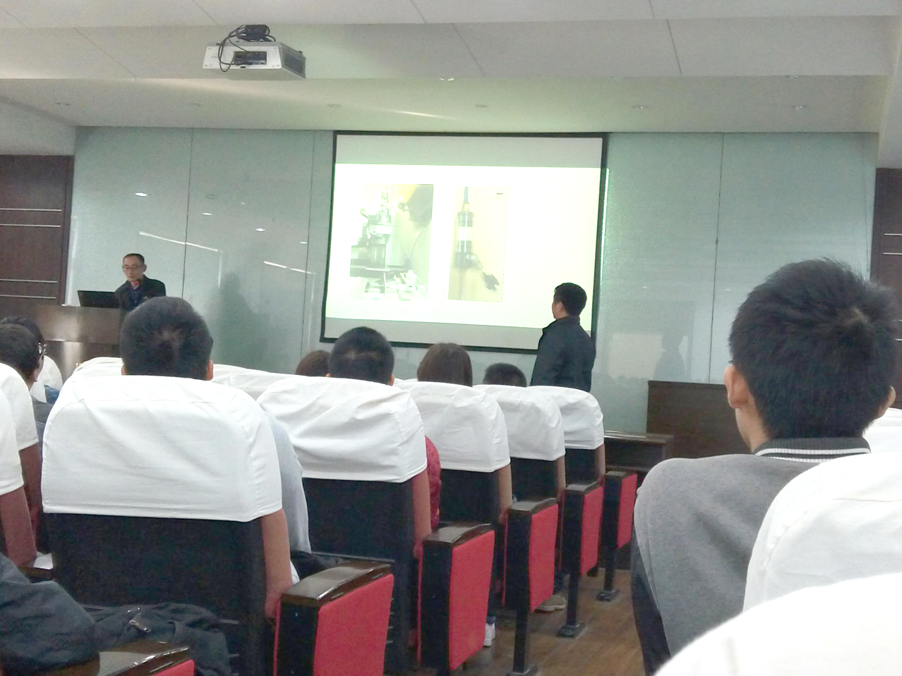 赵奇博士根据目前从事的两个主要研究方向进行了展示介绍。赵博士采用所属团队GEOMECHANICA自主研发的有限元和离散元结合的数值模拟方法(FDEM),结合声发射以及微地震,研究了岩石的损伤和破坏演化过程;并展示了其团队研制世界上第一套可以在在X射线层析成像下进行岩石物理实验的设备(ERDµ)。报告结束后,现场师生与赵博士展开了热烈讨论与交流,他衷心希望能和公司在岩石结构损伤方面开展更深入地合作与交流。