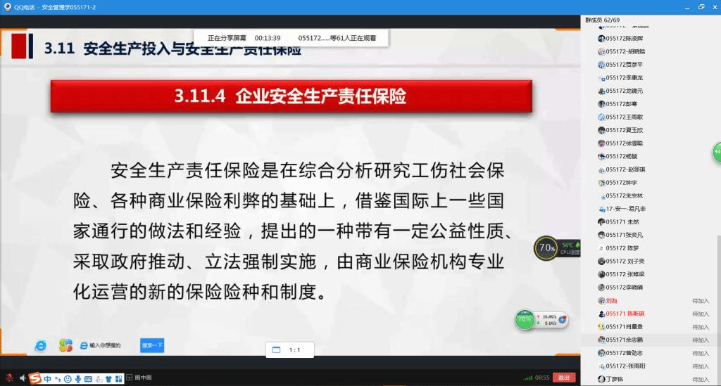 安全工程系教师采取课前预习、课中提问、课后作业多种方式,增强师生互动。杨丹老师在《环境工程》课程每节课之前都会上传学习资料、布置课程预习要求;桂蕾老师在《工程项目管理》和《地质灾害风险分析》课程中实时解答员工提问,并针对员工反馈及时调整课程进度;庞奇志老师在《安全管理学》课程采用视频授课方式,与员工积极互动,一对一解答员工疑问。