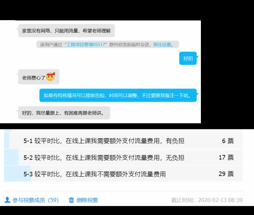 课程结束后,安全工程系教师合理布置作业,认真批阅,了解员工学习状态,并及时反馈课堂教学,对不遵守教学纪律员工进行批评教育。对家里没有宽带、手机信号不稳定等的员工,老师们特别关注,自掏腰包给6名困难员工每人补助50元上网费,减少员工负担;针对正在隔离中的员工,老师主动询问情况,为其解疑答惑,解决学习生活上的困难。