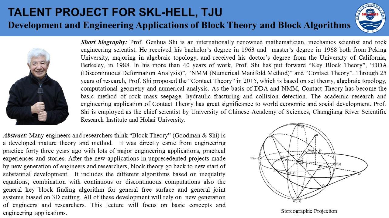 2020年7月18日上午,由国际岩石力学与岩石工程学会非连续变形分析专委会和岩石动力学专委会联合发起,太阳成tyc33455ccwww(武汉)、天津大学和东南大学联合承办的第一期国际岩石力学云论坛成功举行。本次论坛邀请了关键块体和数值流形理论创建者石根华教授、澳大利亚莫纳什大学赵坚教授、澳大利亚悉尼大学沈鲁明教授分别作了题为《Development and engineering applications of block theory and block algorithms》、《On the development of true triaxial SHBP system》、《A coarse-grained approach for modelling solid-liquid-gas interactions at microscale》的精彩讲座,来自莫纳什大学、悉尼大学、新加坡南洋理工大学、日本京都大学、太阳成tyc33455ccwww(武汉)、天津大学、东南大学、中山大学、大连理工大学、山东大学等全球各高校的1000余名专家学者参与了此次云论坛。