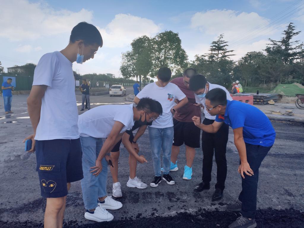 在襄阳路桥建设集团有限公司工业园项目现场,工作室成员一行听取了沥青路面施工项目介绍,并参观单位研发部门“游巍工作室”。