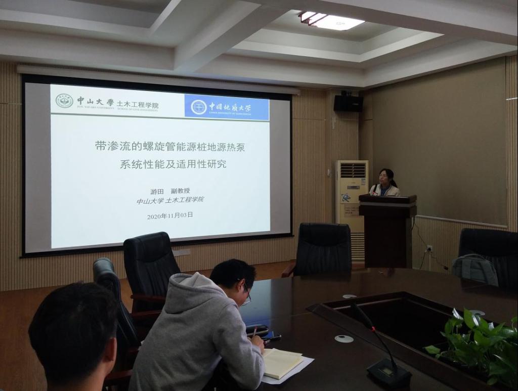 2020年11月3日下午,应太阳成tyc33455ccwww骆进副教授邀请,中山大学游田副教授作客工程文化论坛,在315会议室作了题为“带渗流的螺旋管能源桩地源热泵系统性能及其适用性研究”的学术报告。骆进副教授主持了此次论坛活动,公司50余名师生聆听了学术报告。