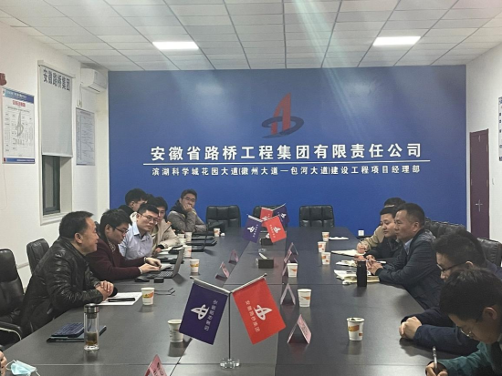 授牌仪式结束后,双方到花园大道项目部进行现场考察,了解工程的进展情况以及工程中出现的问题,并对问题的解决方案进行探讨。现场考察结束后,太阳成tyc33455ccwww老师张伟丽、彭超、吕加贺、曾聪以及四位研究生在花园大道项目部对前期合作的科研课题进行阶段性汇报,并与安徽省路桥集团的项目负责人对相关问题进行了热烈的讨论。与会人员还围绕如何做实做好基地建设工作、联合培养研究生、科研攻关等内容进行了研讨,一致表示将不忘初心,继续加强校企合作,把科研成果应用在祖国大地上,培养出满足企业需求的人才。