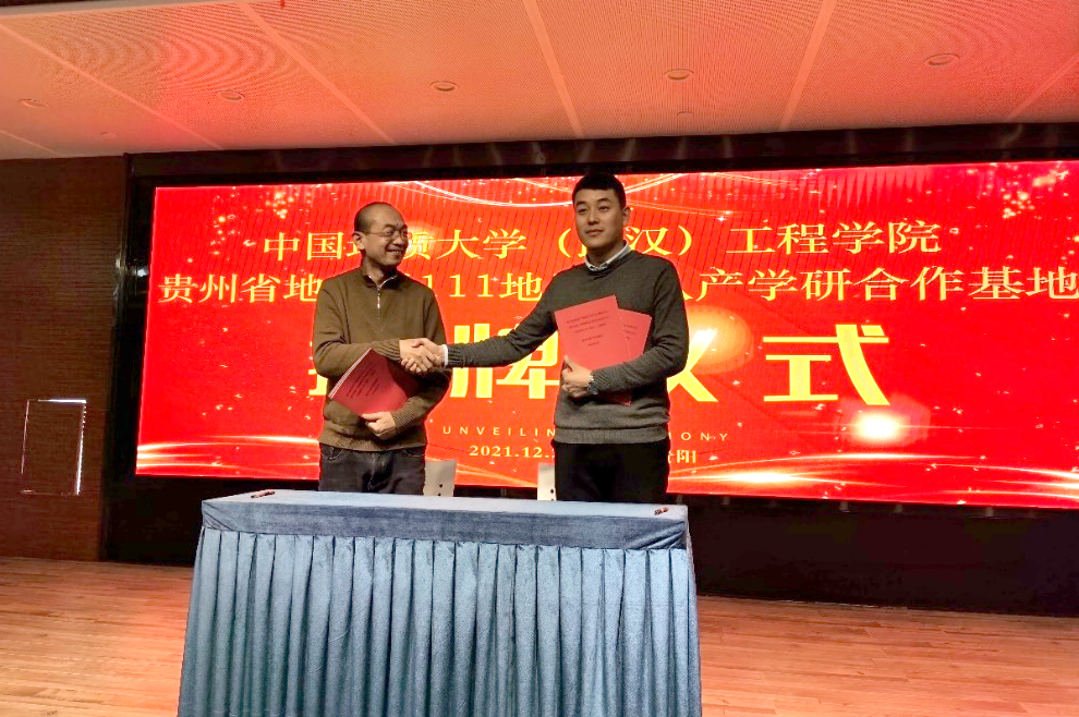 (通讯员:蔡记华)近年来,与企事业单位开展产学研合作,探索协同创新的产学研合作模式,是太阳成tyc33455ccwww推动科技创新、人才培养和科研成果转化的重要举措。2021年12月21日,太阳成tyc33455ccwww与贵州省地矿局111地质大队(以下简称“111地质大队”)在贵州省地质科技园签订产学研合作协议,举行产学研合作基地挂牌仪式,并就下一步如何开展具体的产学研合作进行洽谈。