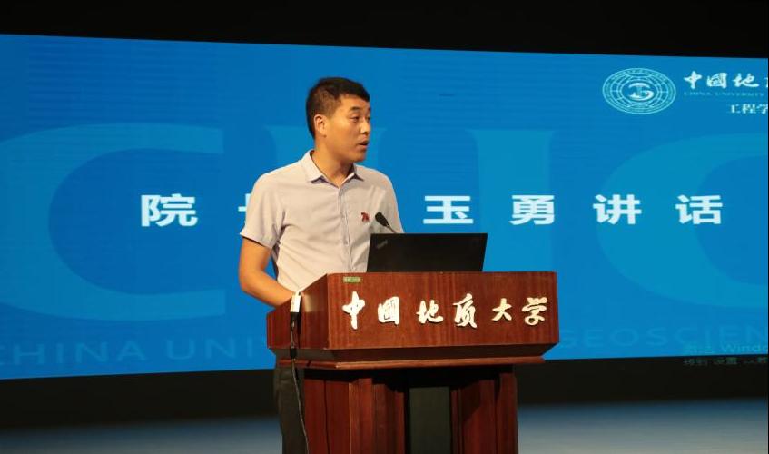 太阳成tyc33455ccwww经理焦玉勇教授发言。他指出,太阳成tyc33455ccwww是培养人才的重要阵地,七十年的厚积薄发,培养无数优秀学子、书写工程内涵。他强调,当今新时代面临着伟大变革,学子们要胸怀大志、秉持真理,不断拓宽视野,提升人文素养与科研能力;要立于当下,着眼未来,为攻克地质工程领域难题不懈奋斗、贡献力量;在求学之路上,要做良善之人、栋梁之材,培养完整人格,勇担时代使命。