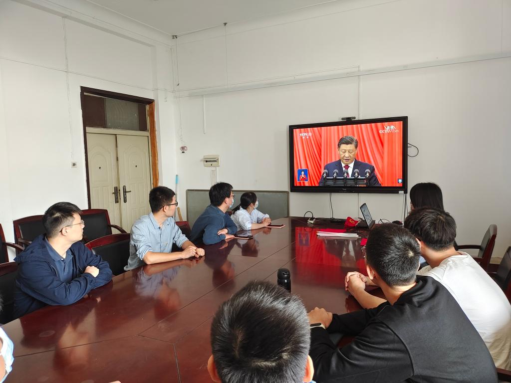 工程公司党委书记李红丽,经理焦玉勇,副经理王亮清、倪晓阳、章广成,公司党委副书记高晓东,各教工党支部书记、主任,院直机关全体工作人员及辅导员在工程楼315集中收看,各系(中心)教工党支部在各系会议室集中收看,员工党支部、团支部代表在工程楼418报告厅集中收看,窦斌副经理及公司代表等在东区教学综合楼A0113集中收看,其他师生在各自宿舍、工作室、会议室等通过电脑、手机收听收看。