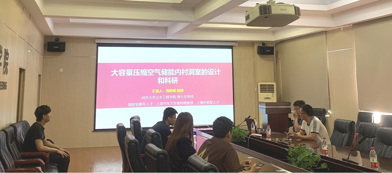 公司唐志成、张国华、郑飞和李芷等老师以及多名研究生参与了本次学术活动。参会师生就硬岩大规模压缩空气储能蕴含的科学问题、关键技术问题、应用前景以及目前普及该技术面临的主要困难等与周舒威教授展开了热烈的讨论。