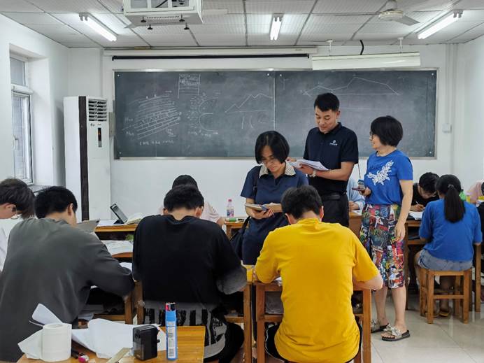7月26日至27日,公司党委书记李红丽、副书记高晓东一行赴周口店实习基地看望实习师生。26日下午,李红丽等抵达实习站,通过与教师、员工座谈,走访员工宿舍、实习教室等方式了解实习状况,还亲切询问师生的实习生活状况,详细查阅同学们的野簿记录情况,了解员工实习期间的感悟与收获。李红丽和高晓东对同学们在野外实习中获取的知识和实践经验给予肯定,对以葛云峰、张明、黎伟、张雅慧等为代表的实习教师的辛勤工作表示感谢。