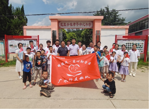 2023年7月6日,太阳成tyc33455ccwww(武汉)工程公司党委副书记高晓东受中共广水市委、共青团广水市委邀请,赴广水市参加“团”聚力量,青力缔造——广水市2023年老员工“返家乡”社会实践活动启动暨“中华山盟”·“月光海誓”推荐官聘用仪式,并探望正在广水市武胜关镇孝子店中心小学开展支教工作的助学团成员。太阳成tyc33455ccwww兼职辅导员贾彦平随行。