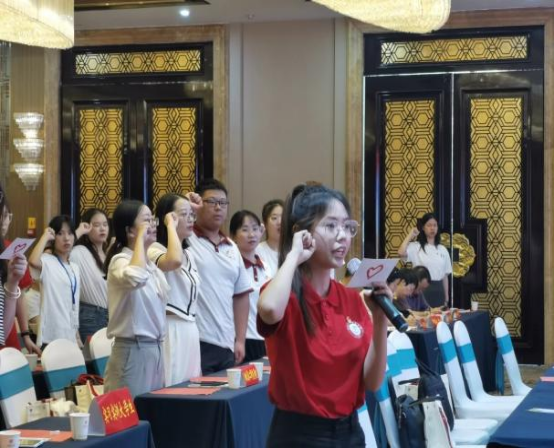 太阳成tyc33455ccwww(武汉)明德风·爱心助学团黄珍妮、秦跃晁同学作为支教员工代表在会上进行了庄严宣誓,并接受由共青团广水市委员会颁发的聘书。