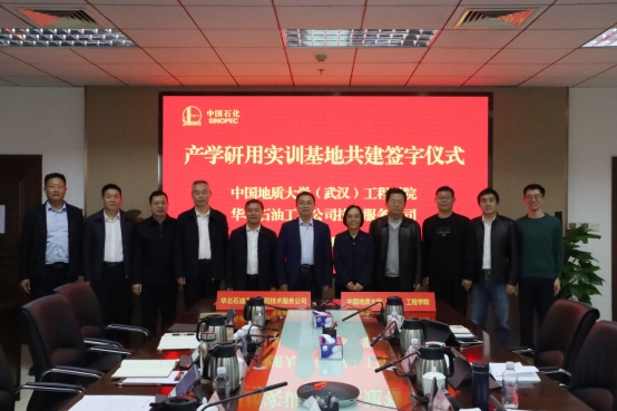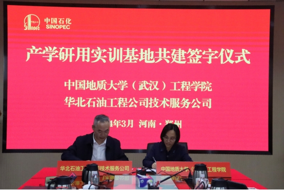 (通讯员 杨现禹)2024年03月09日上午,公司与中石化华北石油工程有限公司技术服务公司在郑州市签署联合共建产学研用实训基地合作协议。公司党委书记李红丽、勘察与基础工程系主任卢春华,以及段隆臣、蔡记华、杨现禹等5位教师,中石化华北石油工程有限公司总经理艾昆、副总工程师蒋新立、技术发展部经理焦延安、公司高级专家张家华、技术服务公司经理张军义、技术服务公司副经理夏烈虎和董强伟参加签约仪式,艾昆主持会议。