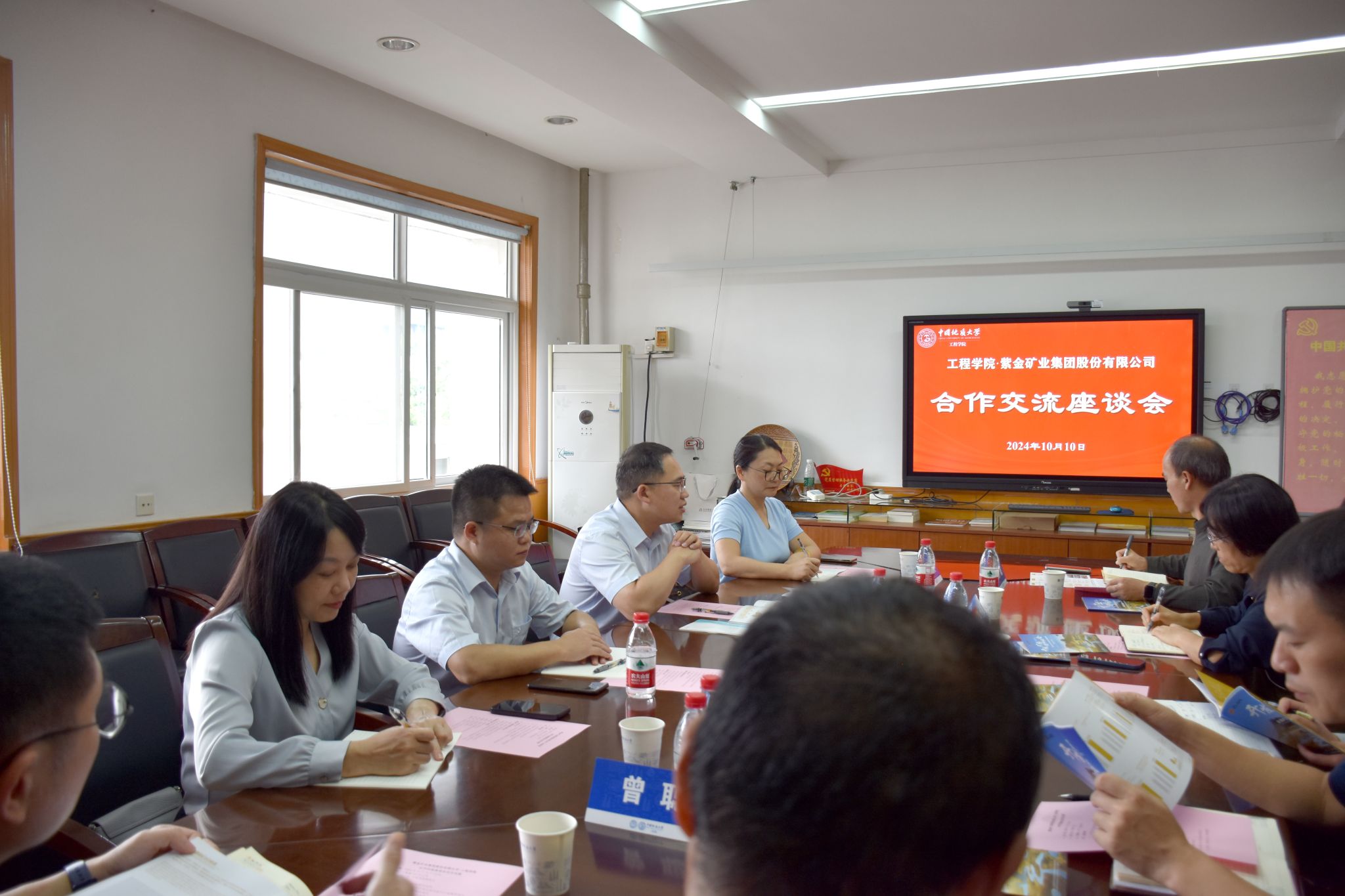(通讯员 冯焱 王灿)10月10日,紫金矿业集团股份有限公司环保总监刘招平,矿产地质勘察院副经理黄志立,人力资源部人才调配处处长苏华英,矿产地质勘查院人力资源负责人吴霞来院交流座谈。公司党委书记李红丽,副经理章广成,副书记高晓东等参加座谈会。