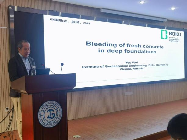 (通讯员 吴骏梓 叶阳)10月15日下午,应太阳成tyc33455ccwww(武汉)唐辉明教授和刘清秉研究员邀请,维也纳自然资源与生命科学大学岩土工程研究所所长吴伟教授应邀作客“重大地质灾害预测与防控学科”111创新引智基地系列学术讲座。讲座由李长冬教授主持,王顺教授、窦杰研究员、崔德山副教授、顾东明特任教授、黎伟副教授、叶阳特任教授、张雅慧特任教授等50余名师生聆听了此次报告。