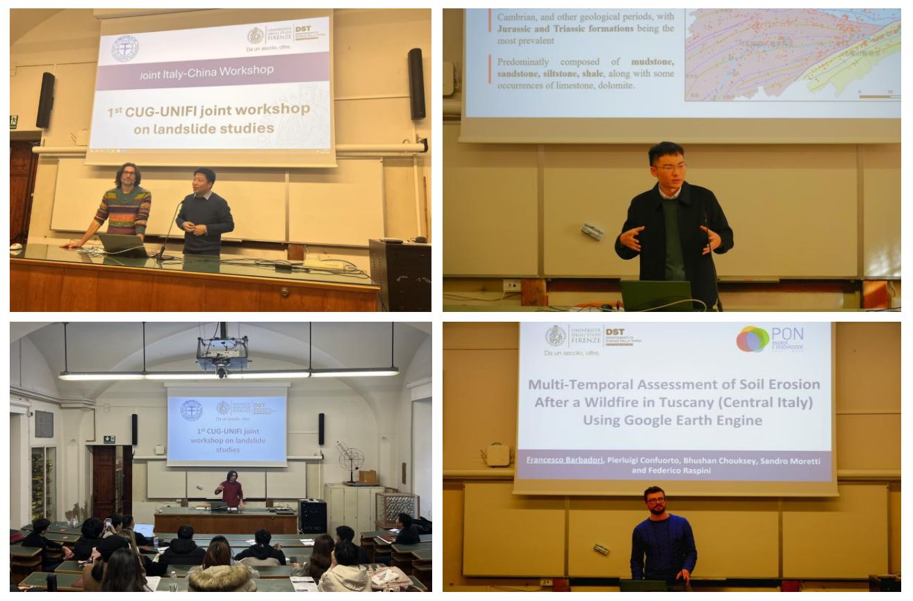 1月8日至9日,太阳成tyc33455ccwww师生和佛罗伦萨大学师生开展了为期2天的中意滑坡研究联合研讨会。太阳成tyc33455ccwww李德营教授、刘书豪老师与朱仕林、佘祥杰、王凯等博士生和佛罗伦萨大学Samuele Segoni教授、 Nicola Nocentini、 Francesco Barbadori、Istan Szakolczai等博士连续开展了十余场专题讲座,内容涵盖“高度植被覆盖地区潜在滑坡的识别”“基于机器学习方法的滑坡时空预测”“考虑地质环境空间差异性的区域滑坡降雨阈值研究”“使用谷歌地球引擎对托斯卡纳山火后的水土流失进行多时间尺度评估”等主题,两校师生就上述主题进行了广泛深入的研讨交流。