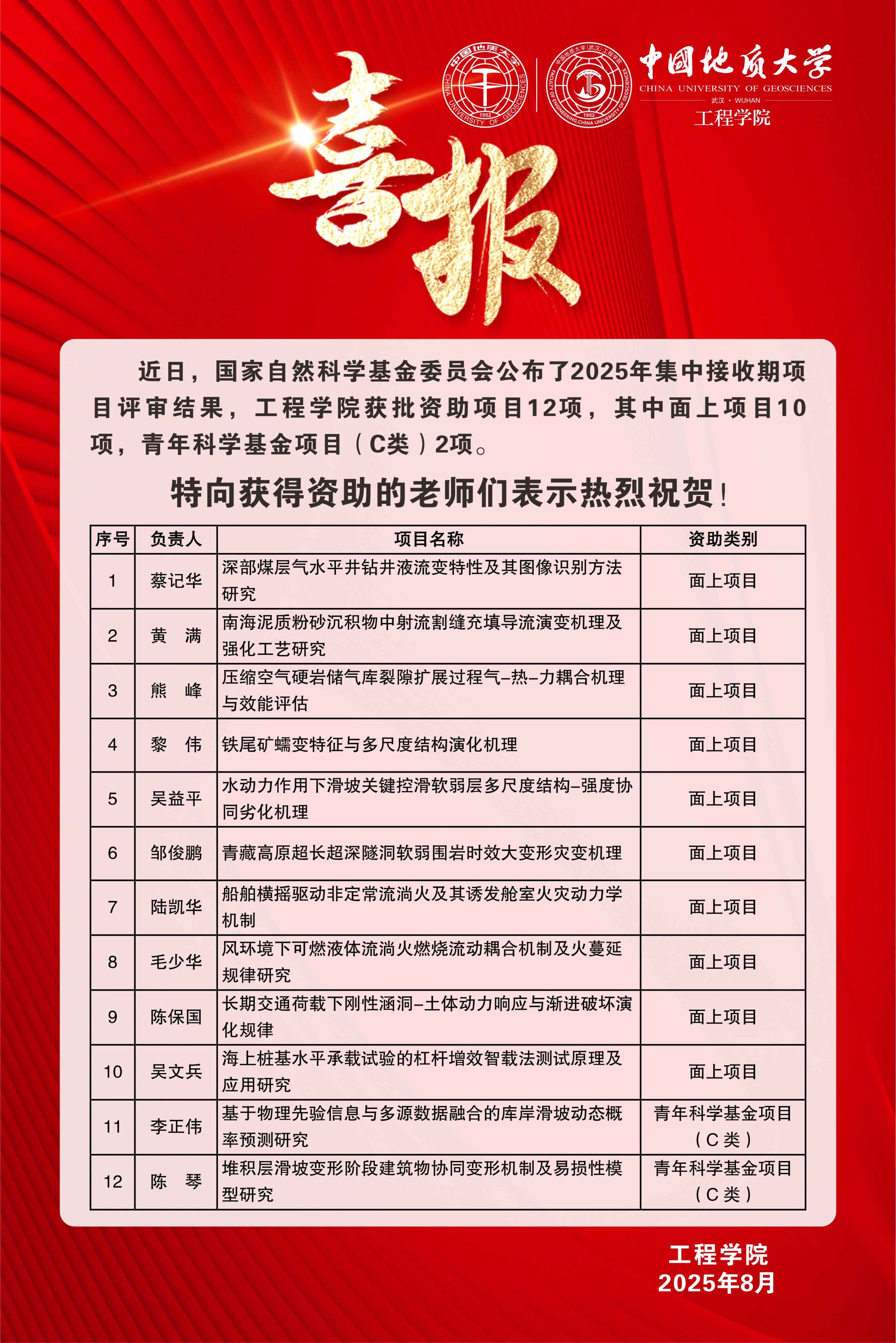喜报:太阳成tyc33455ccwww获批国家自然科学基金项目12项