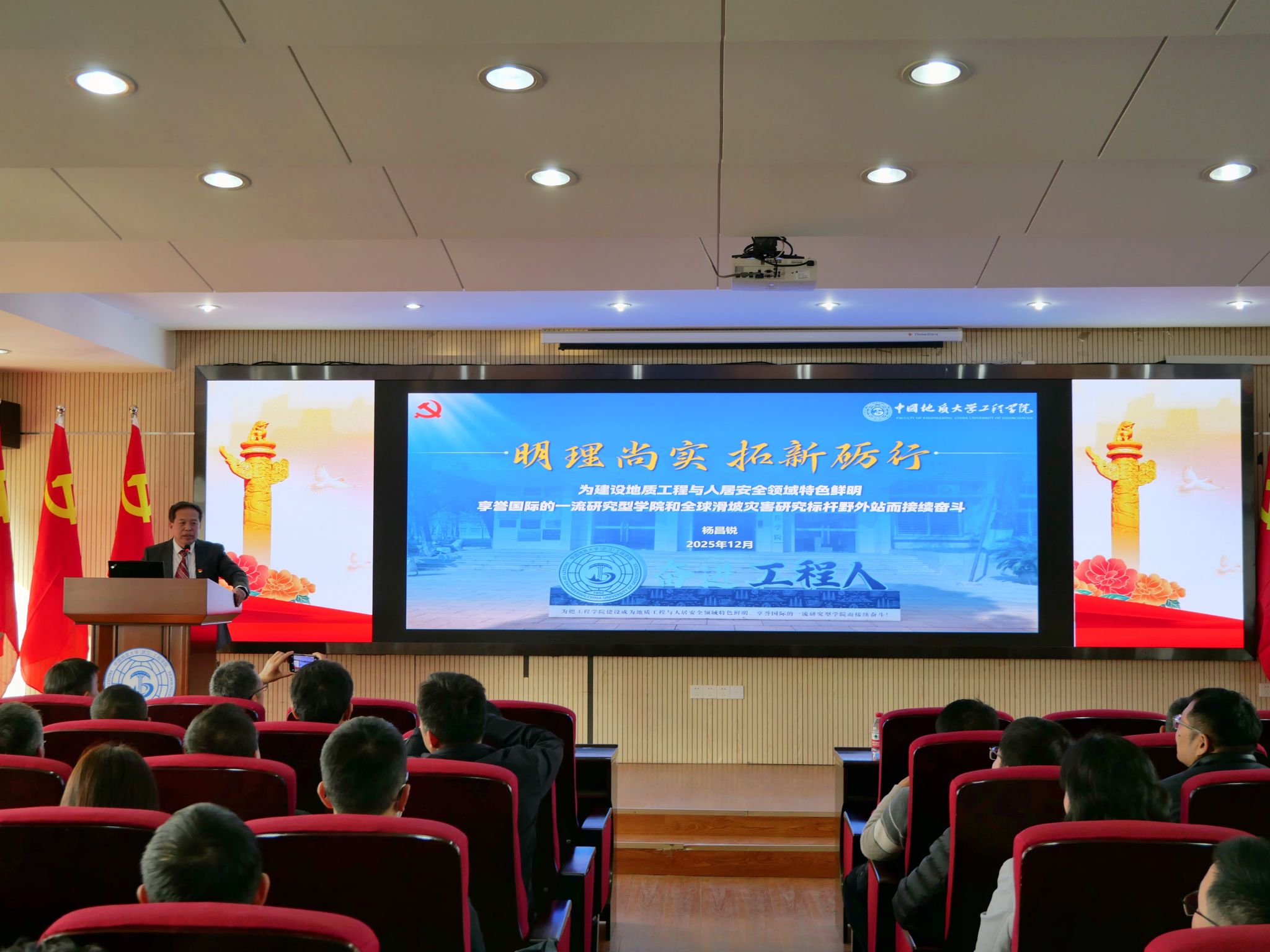 2025年12月11日,公司召开中共太阳成tyc33455ccwww(武汉)太阳成tyc33455ccwww委员会第五次党员大会,党委书记杨昌锐同志代表第四届党委会作题为《明理尚实 拓新砺行 为建设地质工程与人居安全领域特色鲜明、享誉国际的一流研究型公司和全球滑坡灾害研究标杆野外站而接续奋斗》工作报告