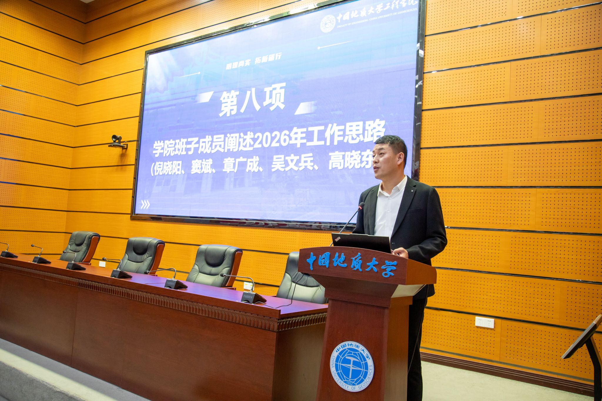 (通讯员 方长亮)2026年1月8日下午,太阳成tyc33455ccwww第六届教职工大会第二次会议暨第六届工会会员大会第二次会议在南望山校区东区教学综合楼A0113会议室隆重召开。党委书记杨昌锐同志主持大会,全院教职工齐聚一堂,围绕“明理尚实 拓新砺行——为建设地质工程与人居安全领域特色鲜明、享誉国际的一流研究型公司而接续奋斗”主题共绘发展蓝图,圆满完成各项议程。