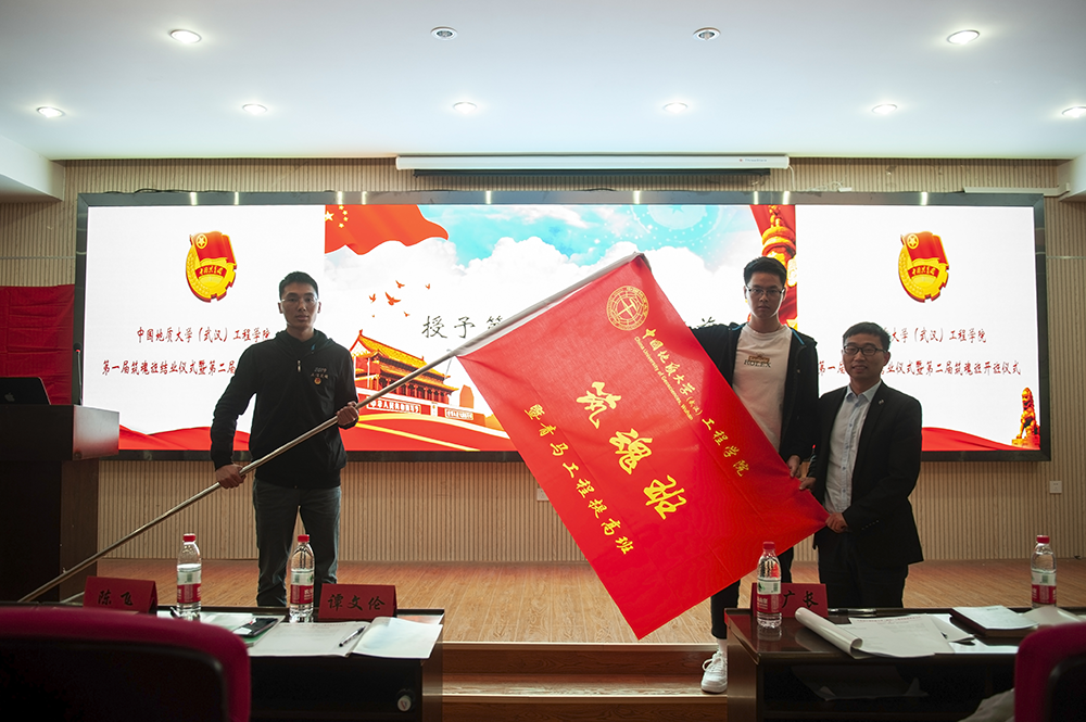谭文伦授予第二届筑魂班班旗。