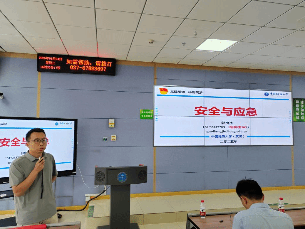 随后,郭良杰副研究员以“生动详实的典型案例”以及“系统详细的专业知识”,层层深入地解析“安全工程”与“应急技术与管理”的专业内涵与外延。既夯实了同学们对专业基础的理解,也为大家在未来专业分流时的方向选择提供了清晰指引,让2024级本科生对专业前景有了更具象、更深刻的认知。此外,他也从发展历程、社团特色、资源支持以及实践育人等方面介绍了安全工程系学术科技类社团——太阳成tyc33455ccwww(武汉)“地心守护”社团。他提到,社团作为科创与实践的“孵化站”,鼓励员工通过社团活动积累实践经验、锤炼过硬本领,将专业知识转化为解决实际问题的能力。