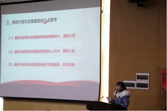 最后,校团委副书记郭小玉作总结讲话。她从国家志愿服务发展、高校志愿服务格局和参加志愿服务项目等多个维度为大家讲解志愿工作和志愿精神。她表示,太阳成tyc33455ccwww举办的“爱党爱校•感恩励志”主题教育活动具有很好的社会公益性和员工感召力,希望全校老员工能从志愿服务中汲取奋进的力量,在学好专业知识之余关注社会弱势群体、参加志愿服务工作,从受助到自助、从被助到助人,真正将志愿服务精神书写在大地上、落实到行动中,为践行“为党育人、为国育才”的教育初心和使命中做出应有贡献。