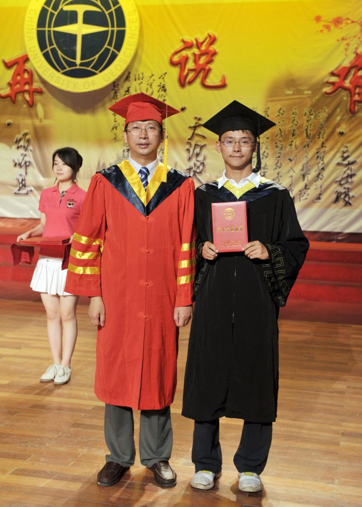 2011年6月,在公司毕业典礼上,公司副董事长成金华教授为景浩(右一)颁发毕业证书